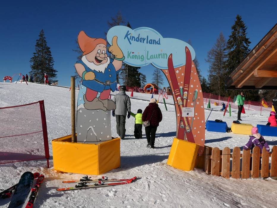 Het Kinderland König Laurin bevindt zich bij het bergstation van de achtpersoonsgondelbaan Hubertus bij de Karerpas. Meerdere transportbanden, een speeltuin en veel grappige figuren laten kinderharten sneller kloppen.