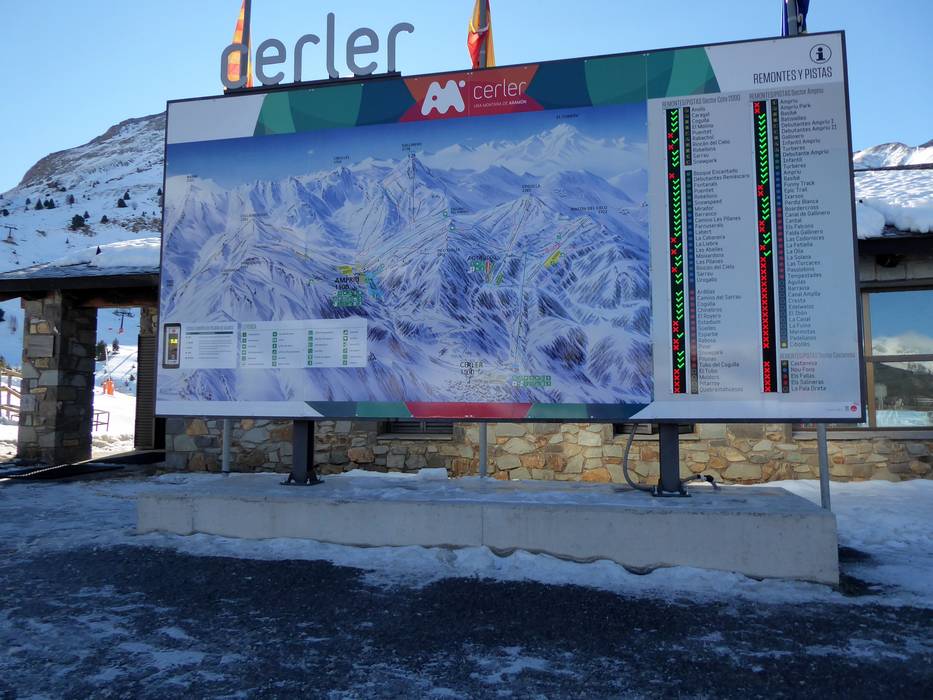 Bij de instappunten in Cerler en Ampriu vind je grote informatieborden met een pistekaart en actuele informatie van de dag. In het skigebied zelf zijn er ook pistekaarten. De pistes zijn allemaal goed aangegeven en zeer goed gemarkeerd. Zo kun je je zelfs bij slecht zicht of mist altijd goed oriënteren.