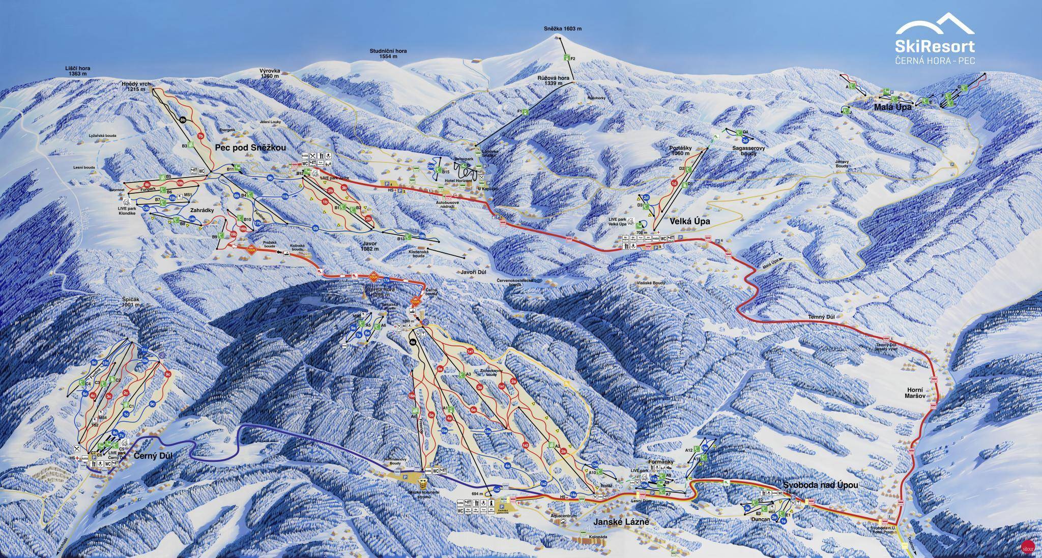 Pistekaart Černá hora/Pec pod Sněžkou/Černý Důl/Velká Úpa/Svoboda nad Úpou/Malá Úpa seizoen 2024/2025