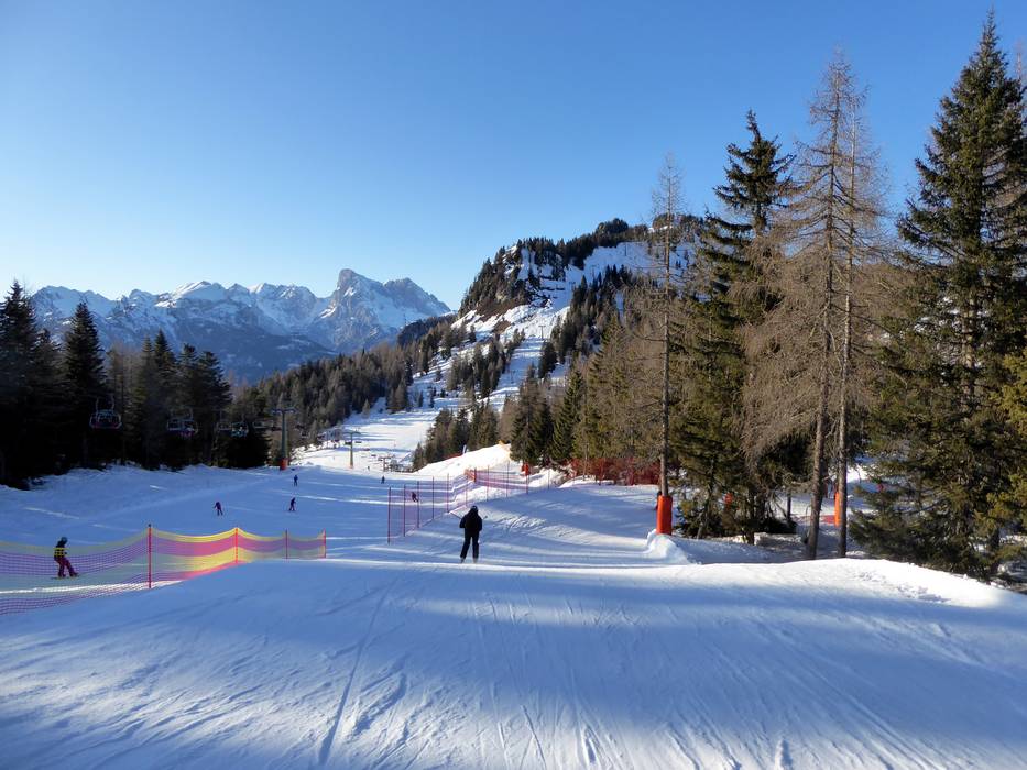 een paar bospaden geen afdalingen met tegenliggers geen off-piste /Tiefschneegedeelten
