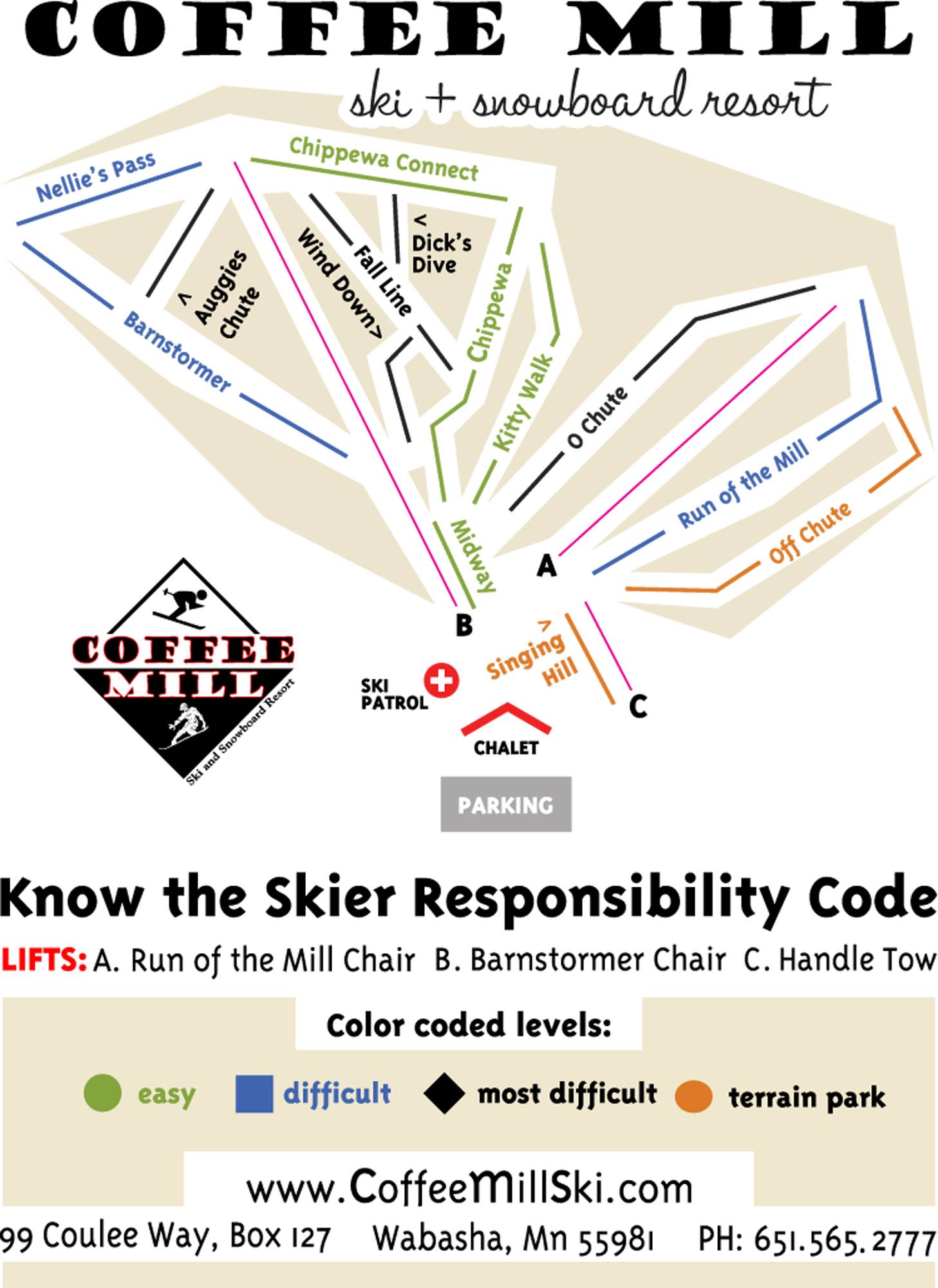 Pistekaart van het skigebied Coffee Mill