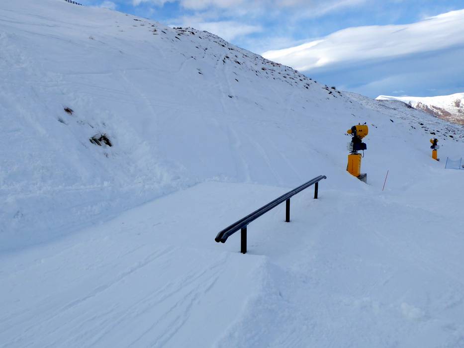 De Rail Garden in het skigebied Coronet Peak bevindt zich bij de Coronet Peak Carpet 4 en biedt rails en boxen. Het kleine funpark is ideaal voor beginners en families.