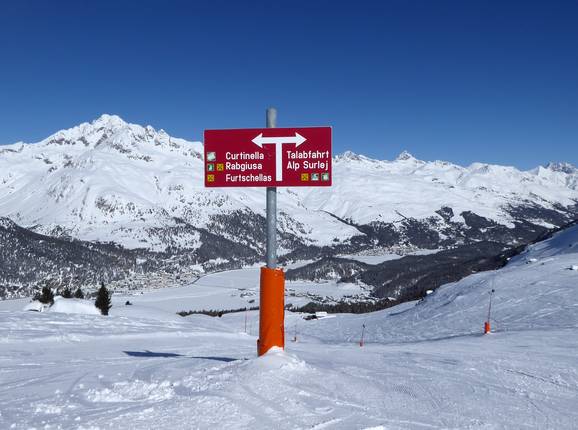 Oriëntatie (pistekaart, informatieborden, bewegwijzering piste) en veiligheid in het skigebied Corvatsch/Furtschellas