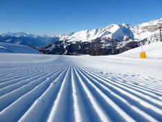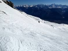 Beklimming met de funitel naar Plaine Morte Panorama op de Violettes 2220 m Piste bij de stoeltjeslift Bellalui Panorama vanaf Plaine Morte 2927 m