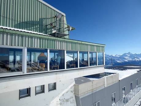 In het hele skigebied van Crans-Montana zijn restaurants en skihutten verspreid. Het aanbod varieert van exclusieve tot eenvoudige restaurants en skihutten met Walliser specialiteiten. Het panorama vanaf de zonneterrassen over het Rhônedal is fantastisch.