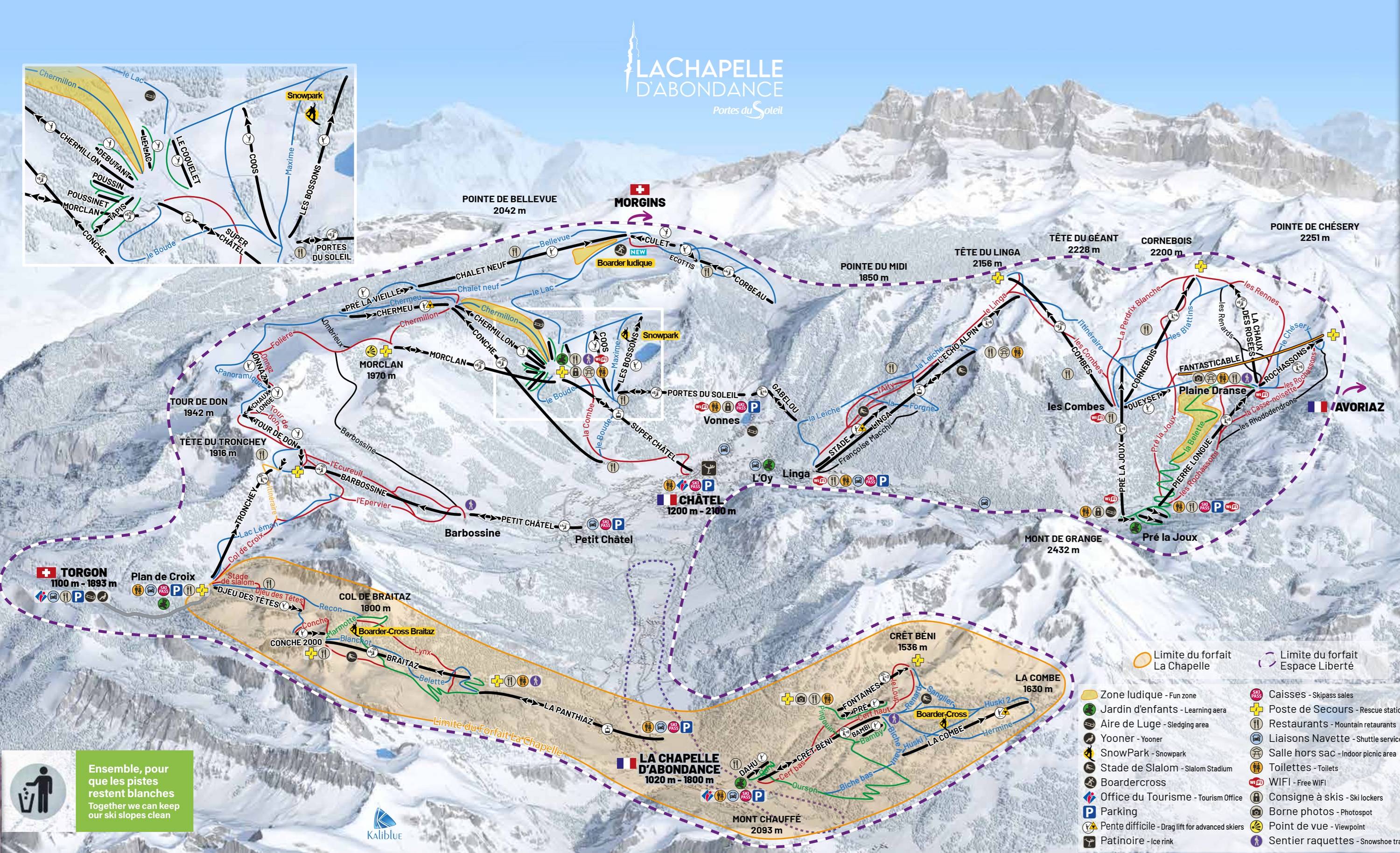 Pistekaart La Chapelle d'Abondance seizoen 2024/2025