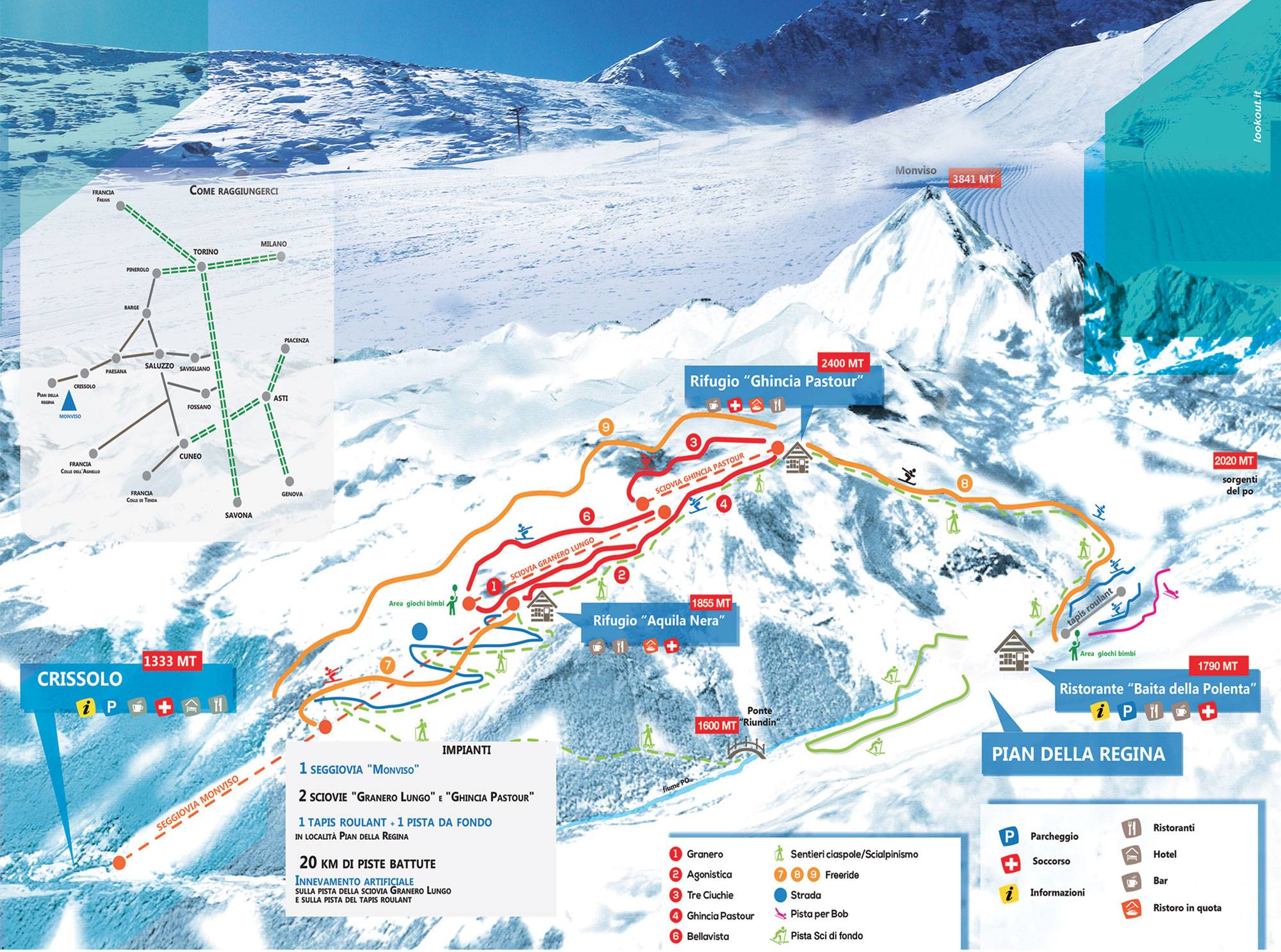 Pistekaart Crissolo – Monviso seizoen 2025/2026