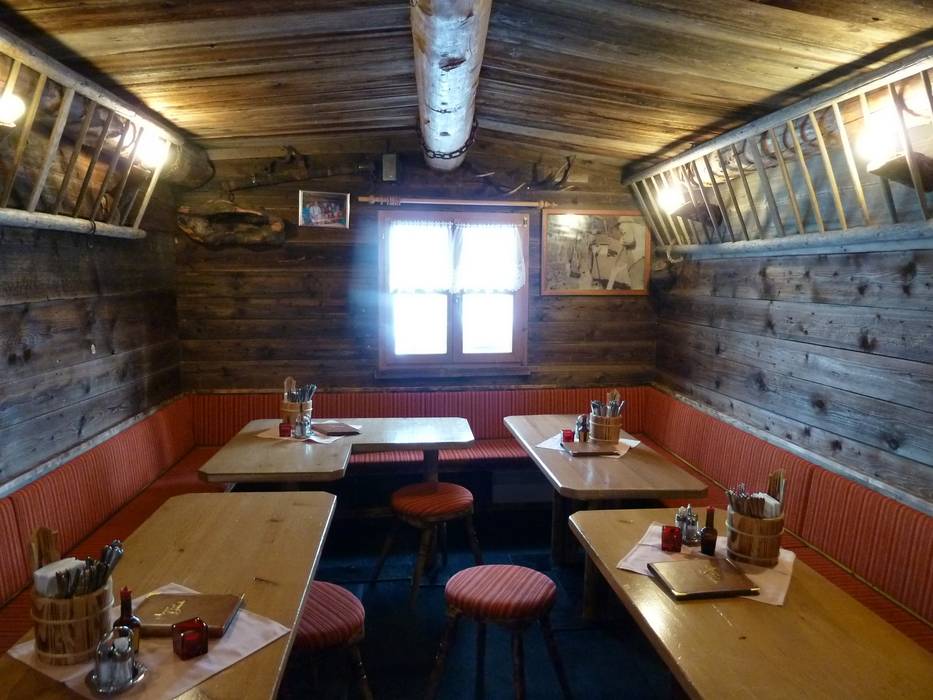 Van buiten ziet het er niet uit als een skihut, maar eenmaal binnen is het de meest authentieke skihut van het hele skigebied.