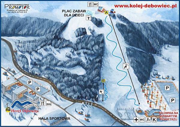 Pistekaart van het skigebied Dębowiec – Bielsko-Biała