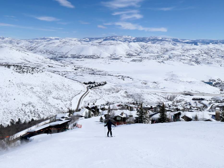 Talrijke dalafdalingen leiden naar de Snow Park Lodge en het dalstation van de Jordanelle Express Gondola.