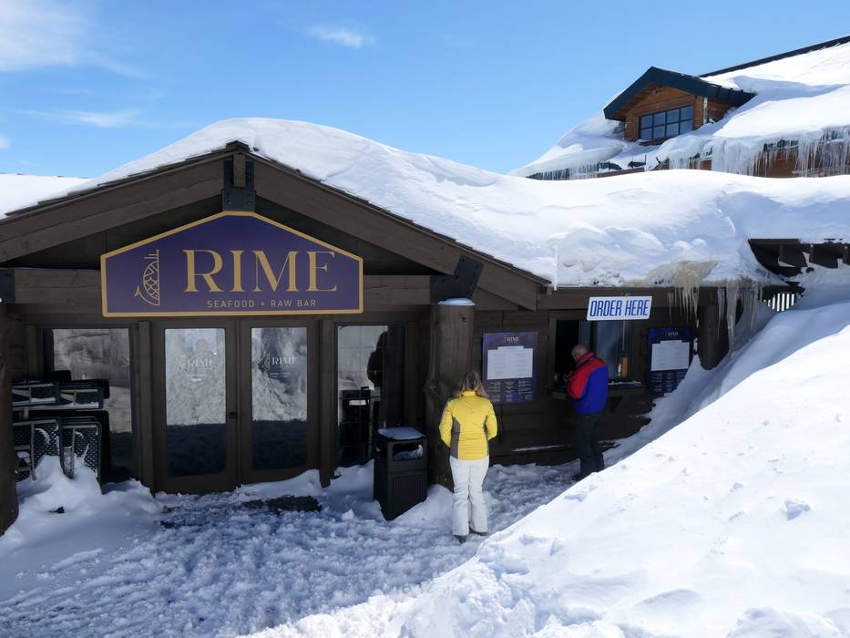 De skihut Rime biedt verse zeevruchten aan. Een interessant contrast in de bergen.