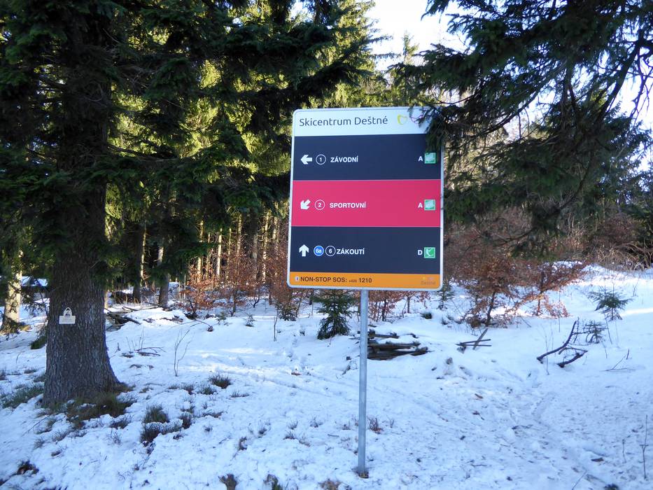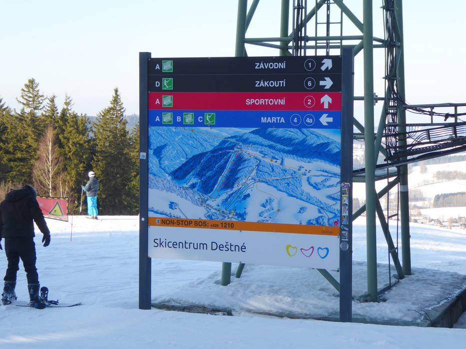 Oriëntatie (pistekaart, informatieborden, bewegwijzering piste) en veiligheid in het skigebied Deštné