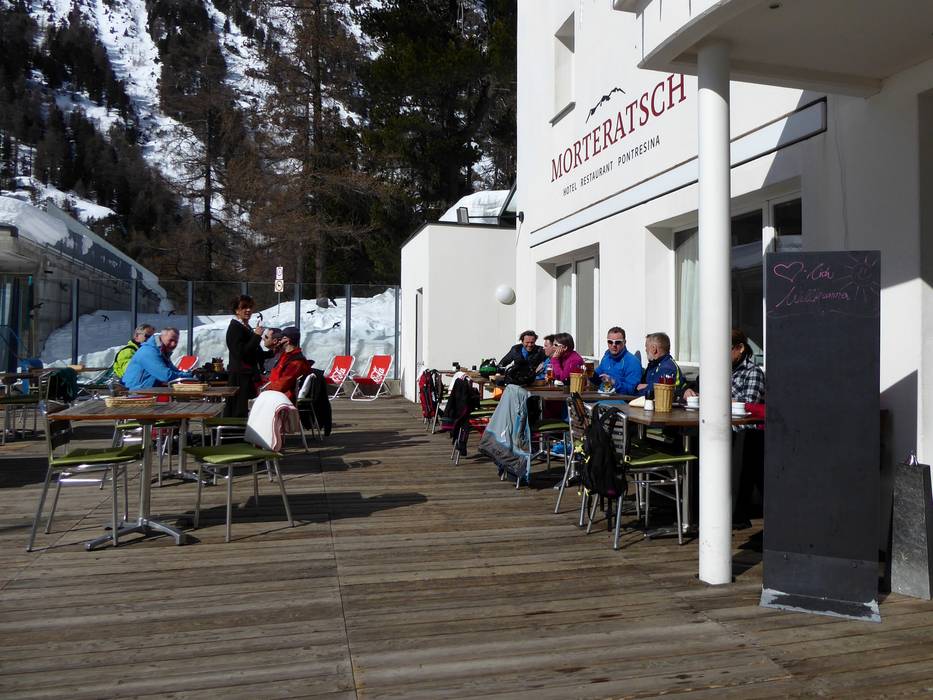 Het restaurant Morteratsch ligt perfect aan het einde van de langste beveiligde gletsjerafdaling van Zwitserland. Hier kun je uitstekend bijtanken nadat je de 10 km lange skiroute over de Morteratschgletsjer hebt voltooid en wacht op de Rhätische Bahn naar Bernina-Diavolezza of Bernina-Lagalb.