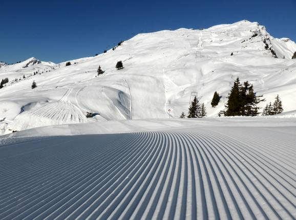 Zowel de steile als de vlakke pistes op de Diedamskopf zijn zeer goed geprepareerd.