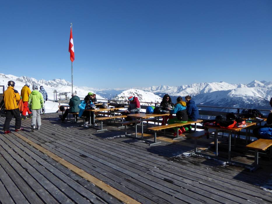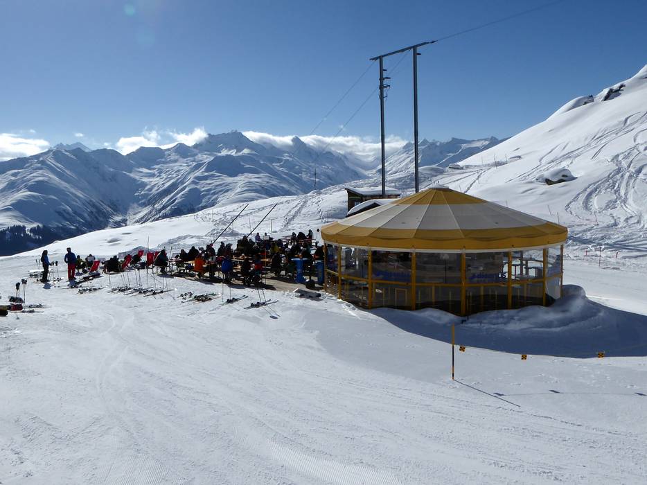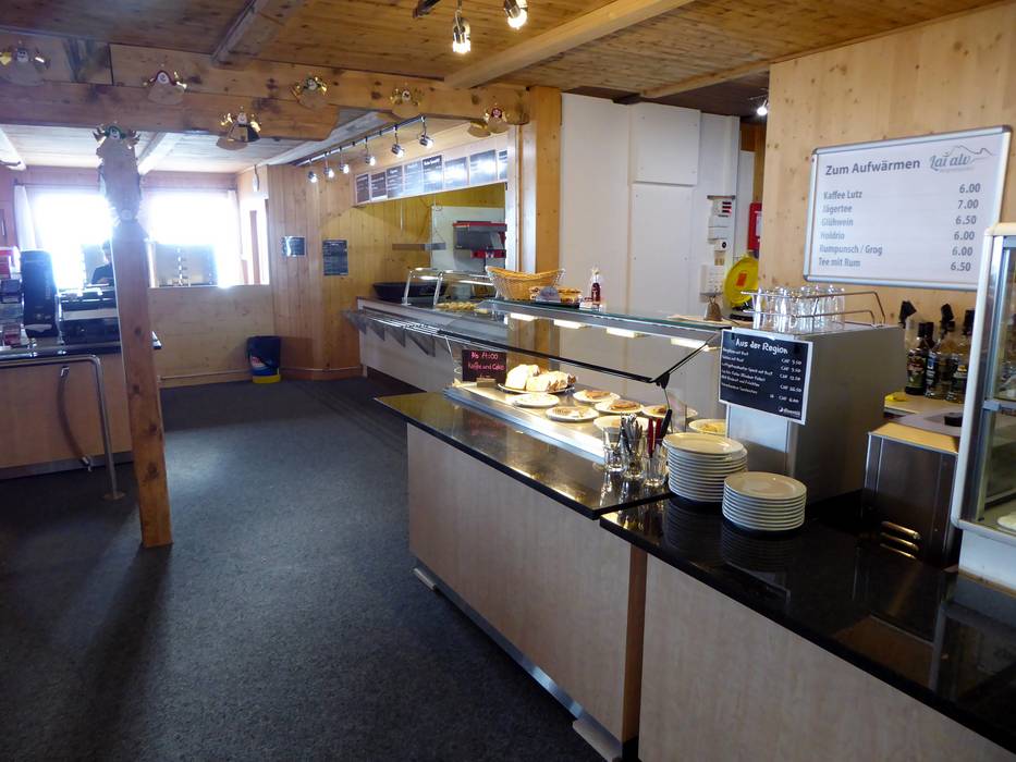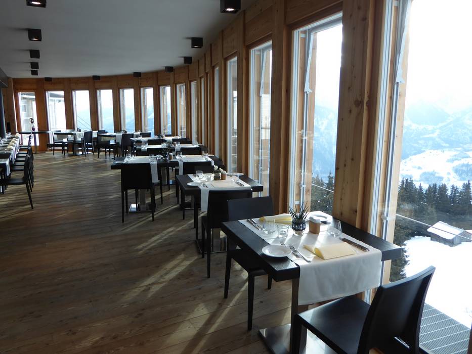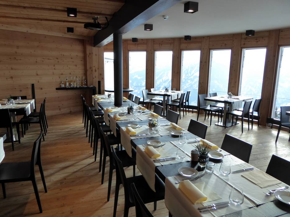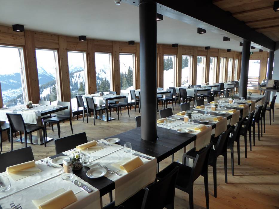 Vanaf het grote zonneterras heb je een prachtig panoramisch uitzicht tot aan de Medelser Gletscher. Het zelfbedieningsrestaurant biedt heerlijke Grisons-specialiteiten en dagelijks wisselende Zwitserse specialiteiten.