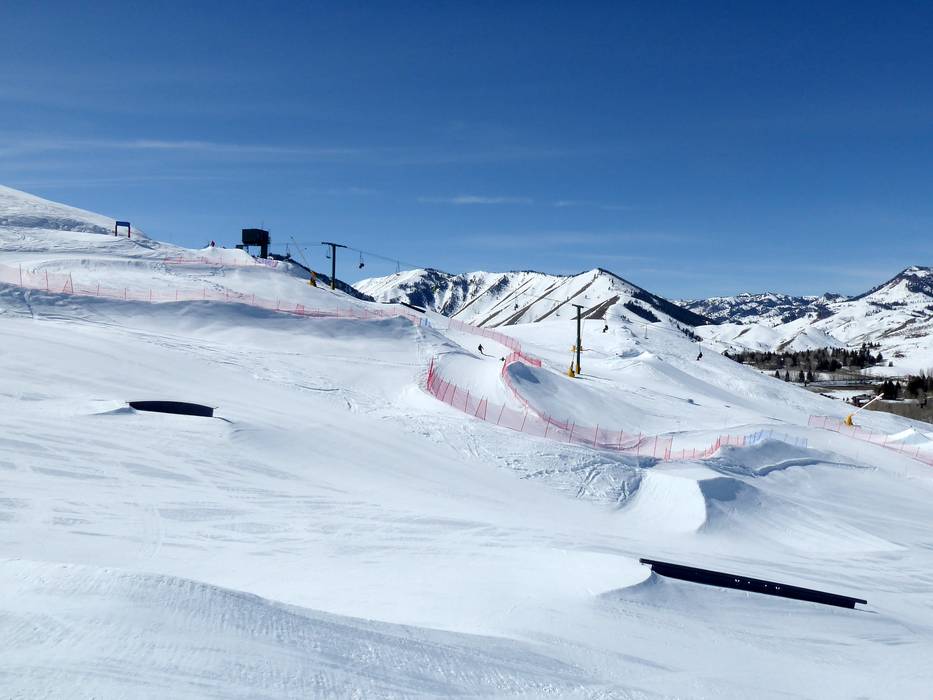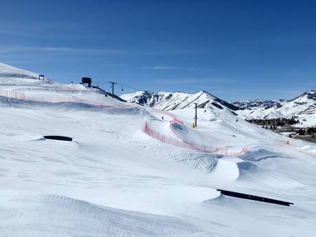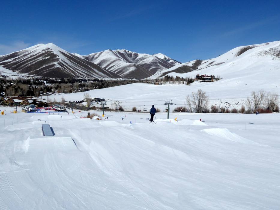 Snowpark/funpark Dollar Mountain – Sun Valley Het skigebied op Dollar Mountain in Sun Valley biedt een ruime keuze aan eersteklas snowparks. Een Snow Cross Course maakt het aanbod compleet.