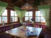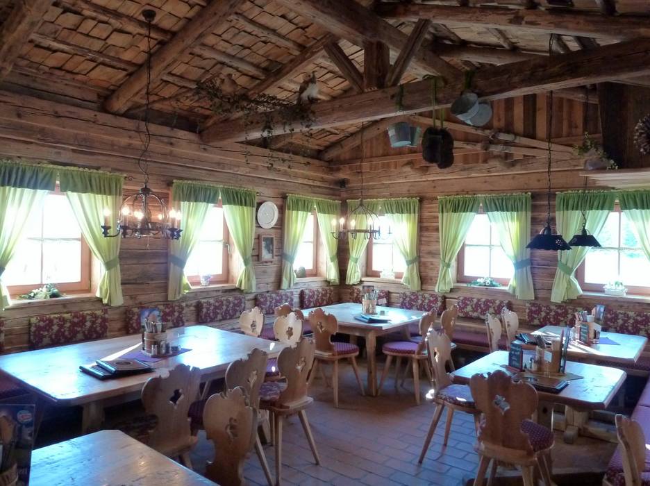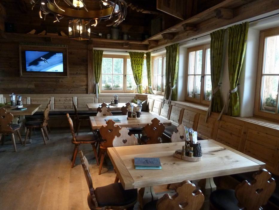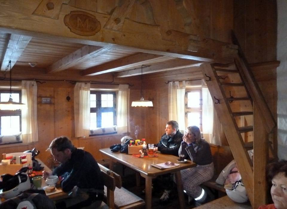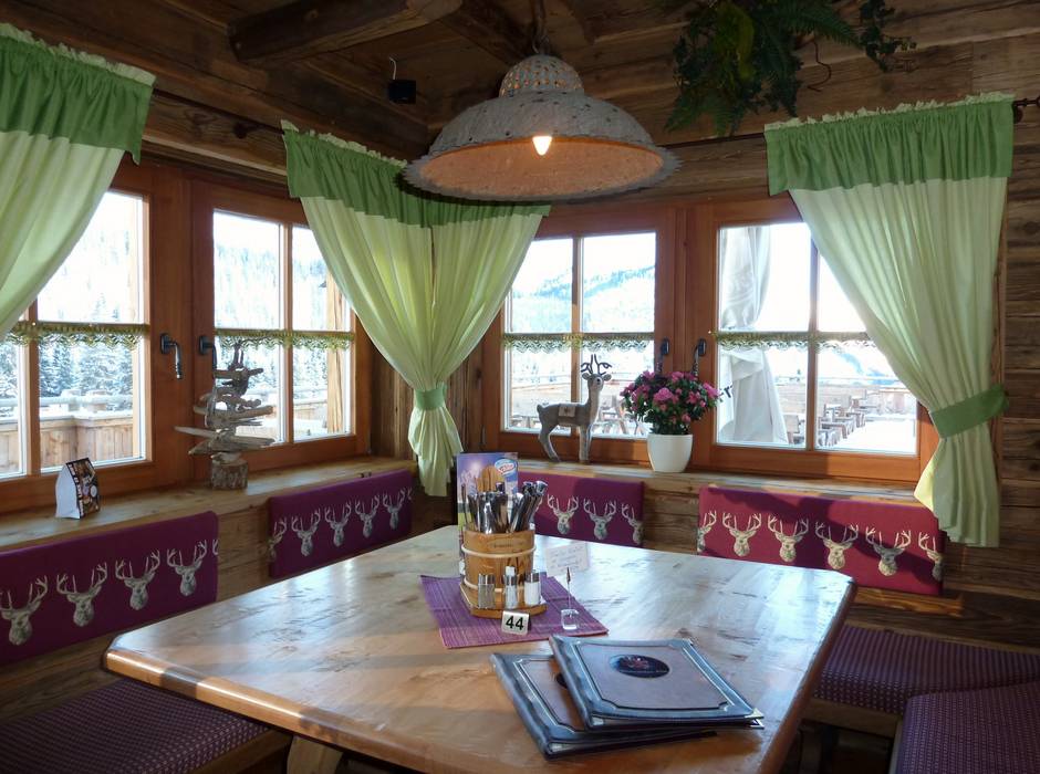 Gezellige hut met tegelkachel, open haard, bar en knusse zithoeken. Hier worden huisgemaakte Tiroler gerechten geserveerd.