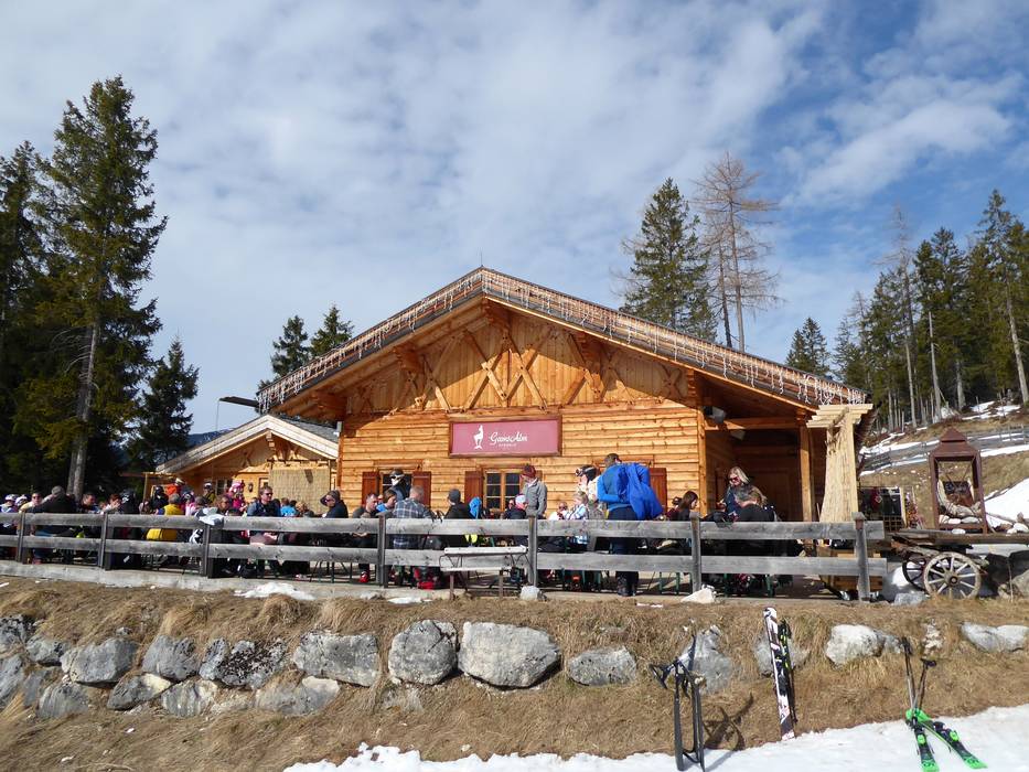 De Gamsalm is een zeer gezellige hut met panoramisch uitzicht en voortreffelijke, regionaal geïnspireerde keuken. Hier wordt zelfs vers Augustiner van het vat geserveerd. Het zonneterras ligt vanaf ongeveer 10 uur in de zon en nodigt uit om te blijven zitten.