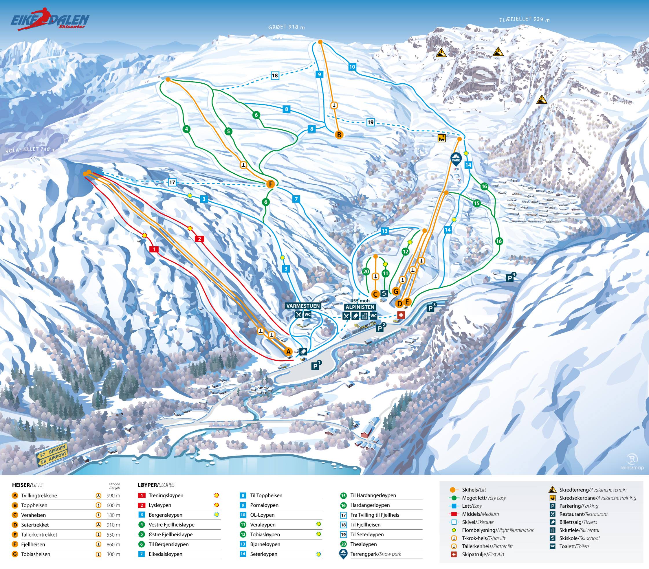 Eikedalen (1,9 km), Tysse (Samnanger) (14 km) Plaatsen bij het skigebied