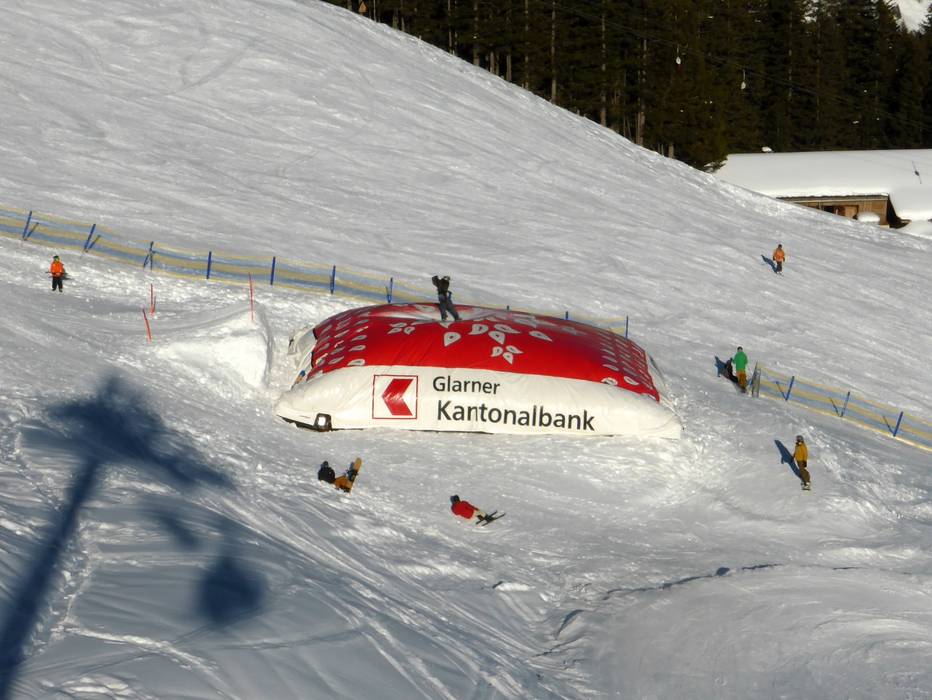 In het skigebied Elm is er een middelgroot snowpark en de BigAirBag, een luchtkussen voor sprongen met een zachte landing.