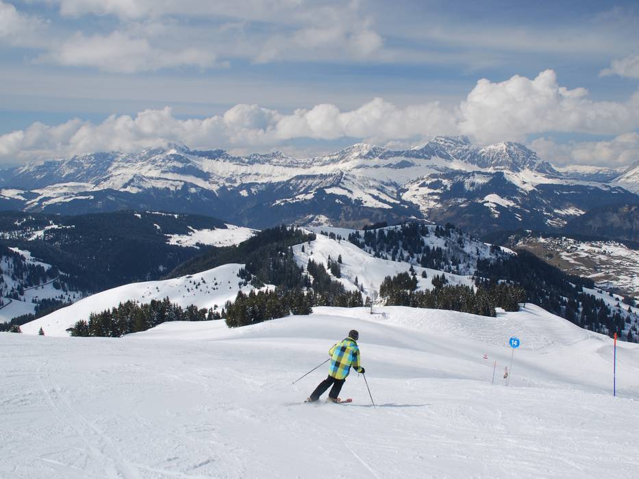De pistes van Espace Diamant bieden steeds weer een prachtig uitzicht op de Mont Blanc. 1/67