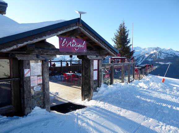 Het bergrestaurant serveert een heerlijke selectie lokale specialiteiten, waaronder Savoie-kaas en vleesgerechten. Klassiekers uit de Franse Alpenkeuken, zoals Tartiflette, staan ook op het menu. Vanaf het zonneterras heb je een prachtig uitzicht op de omliggende bergen.