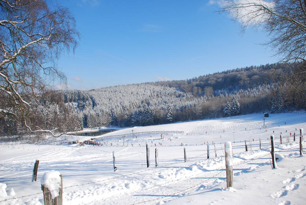 Het skigebied Fahlenscheid – Olpe ligt in het Sauerland (Duitsland, Duitse Middelgebergte).