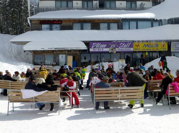 De après-skibar van Hotel Feldberger Hof is volledig ingericht met 300 jaar oud meubilair uit een voormalige boerderij. Bij slecht weer kan er daarom in een gezellige, authentieke sfeer gefeest worden. Bij zonnig weer is er een groot terras.