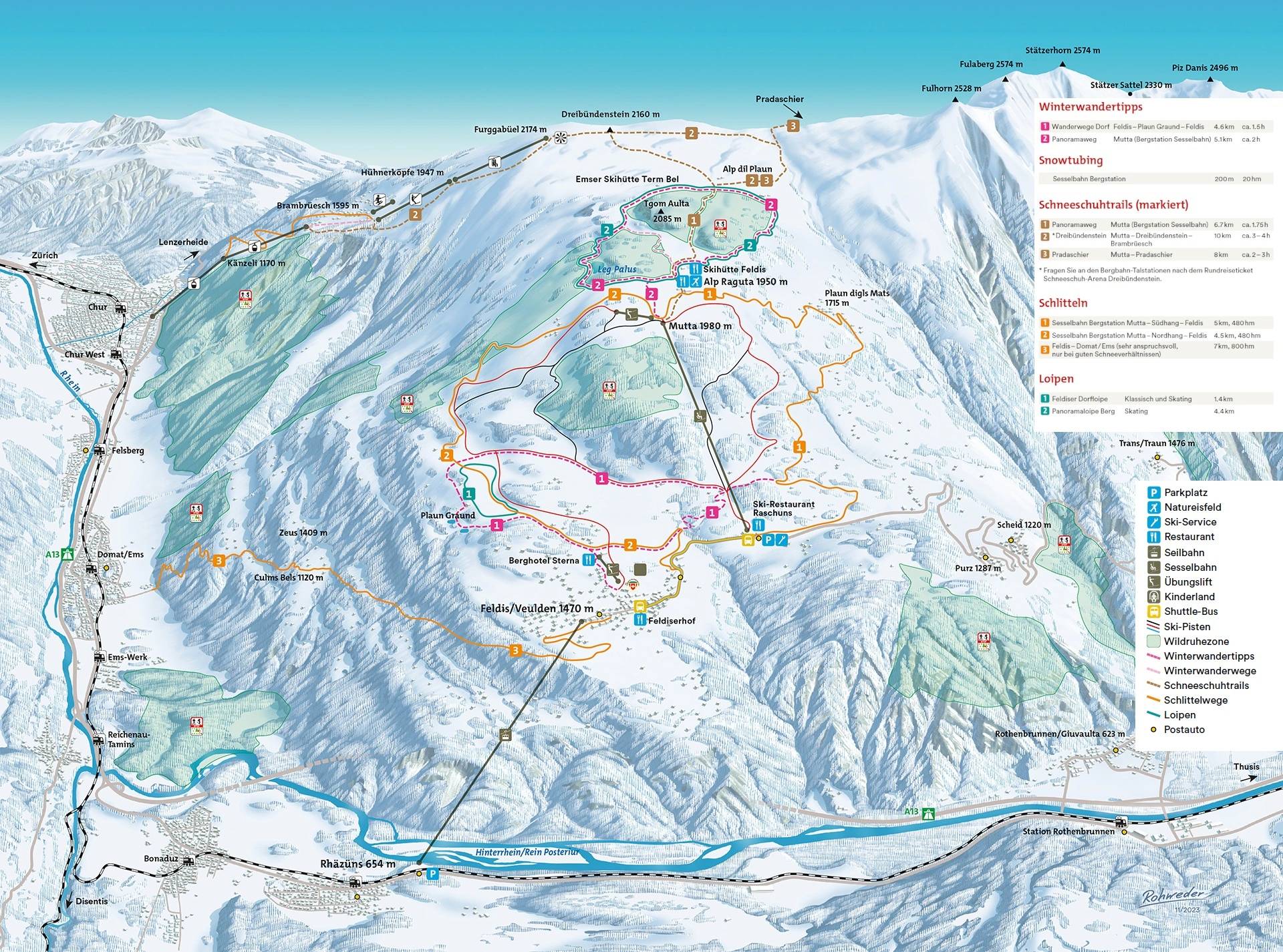 Rhäzüns (0,6 km), Feldis (Veulden) (0,9 km) Plaatsen bij het skigebied