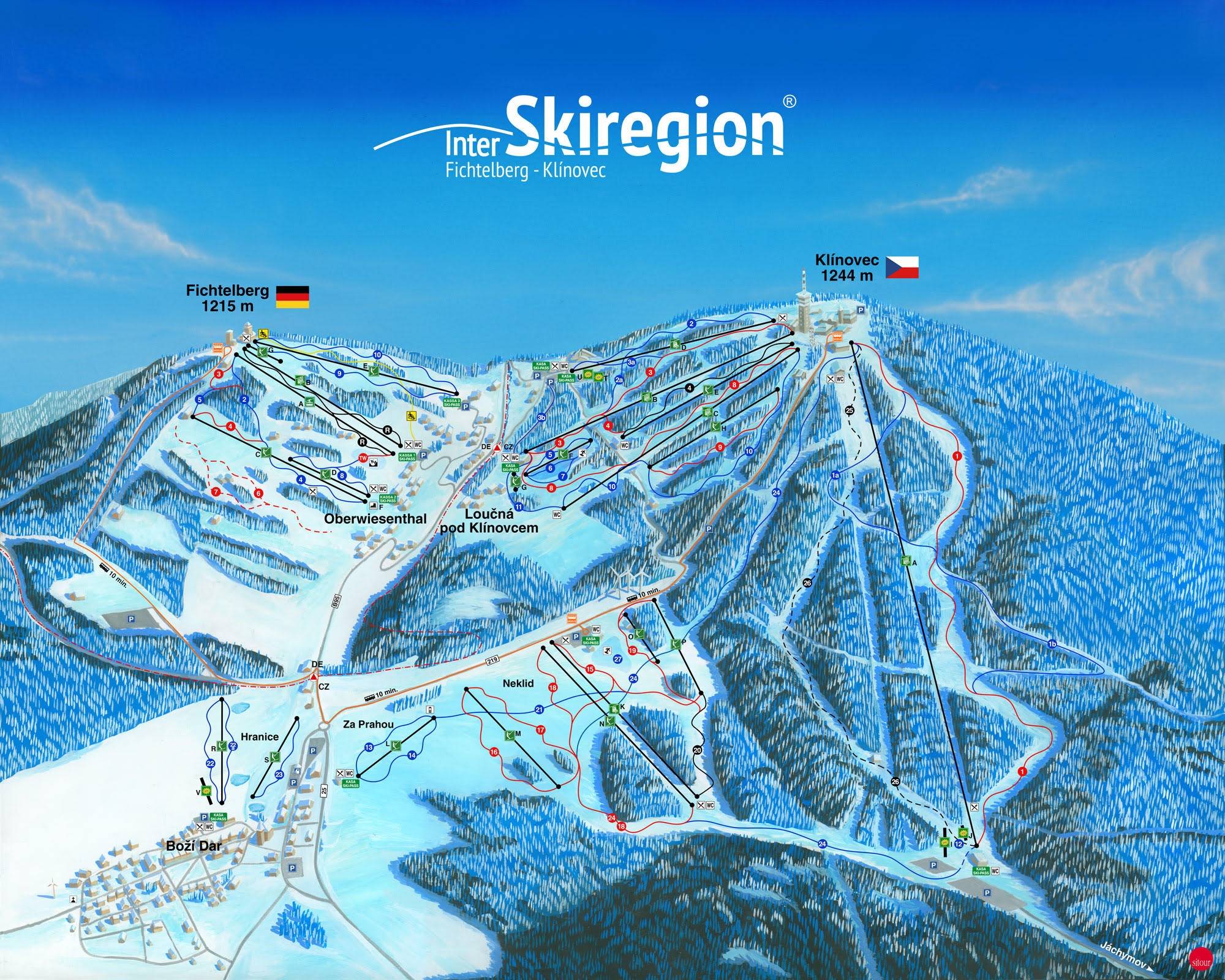 Pistekaart InterSkiregion Fichtelberg / Klínovec seizoen 2025/2026