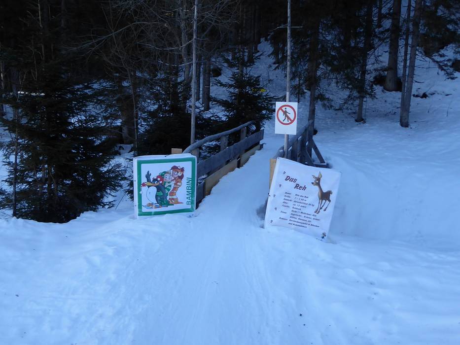 Vanaf de Kleinbergalm begint een rodelbaan. De natuurlijke rodelbaan is ook verlicht.