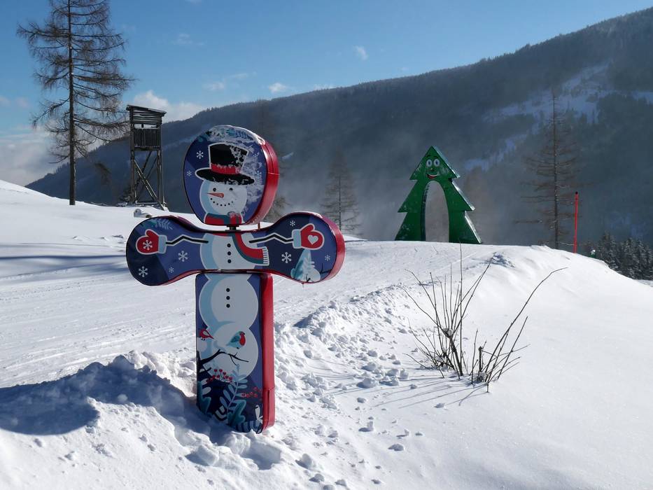 De funpiste Schneemannweg zorgt met vriendelijke winterfiguren voor afwisseling en plezier. Ze ligt bij de stoeltjeslift Großberg.