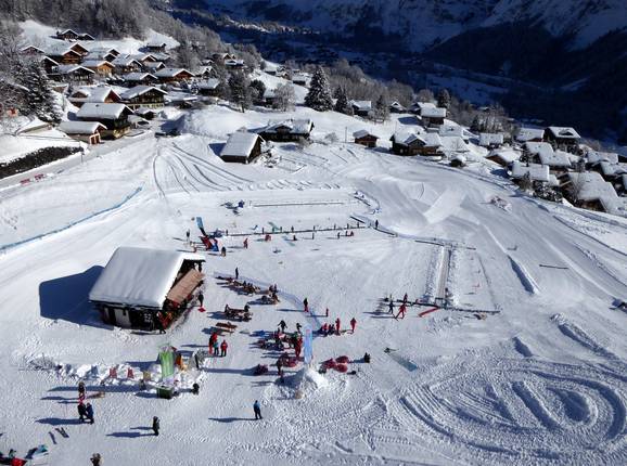 De bodmiARENA ligt boven Grindelwald. Twee sleepliften en een transportband ontsluiten eenvoudige pistes met een racebaan, rodelhelling en snowtubing.