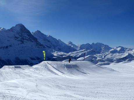 In het skigebied First vind je een van de grootste snowparks in het Berner Oberland. Daarnaast is er een Beginner Park, een perfect geprepareerde superpipe en een skicross.