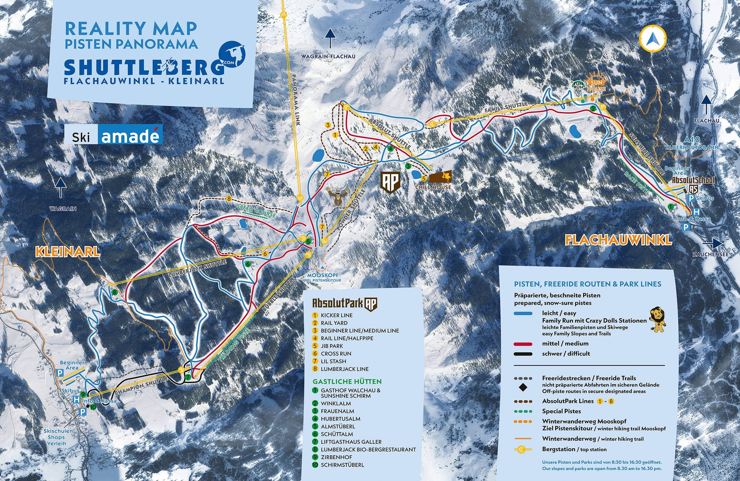 Pistekaart Flachauwinkl/Kleinarl (Shuttleberg) seizoen 2025/2026