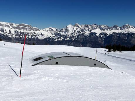 Het skicrossparcours op de Flumserberg verrast met golven, sprongen en steile bochten. Het bevindt zich bij de achtpersoons stoeltjeslift Prodkamm.