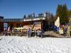 De La Pendana Ski-Bar is een levendige skibar direct aan de pistes met een gezellige inrichting en een groot zonneterras. Er worden snelle gerechten zoals panini, pizza en grillgerechten aangeboden, evenals regionale specialiteiten – perfect voor eten, drankjes en après-ski sfeer.
