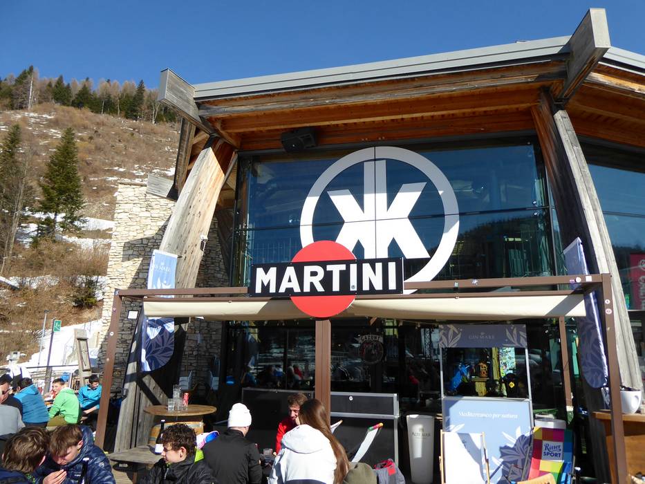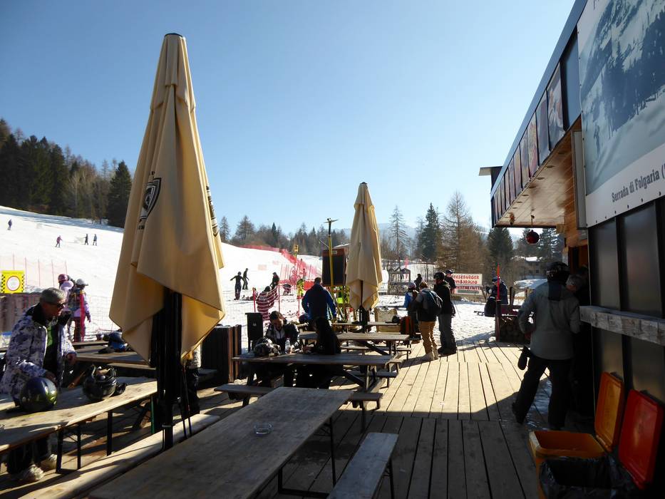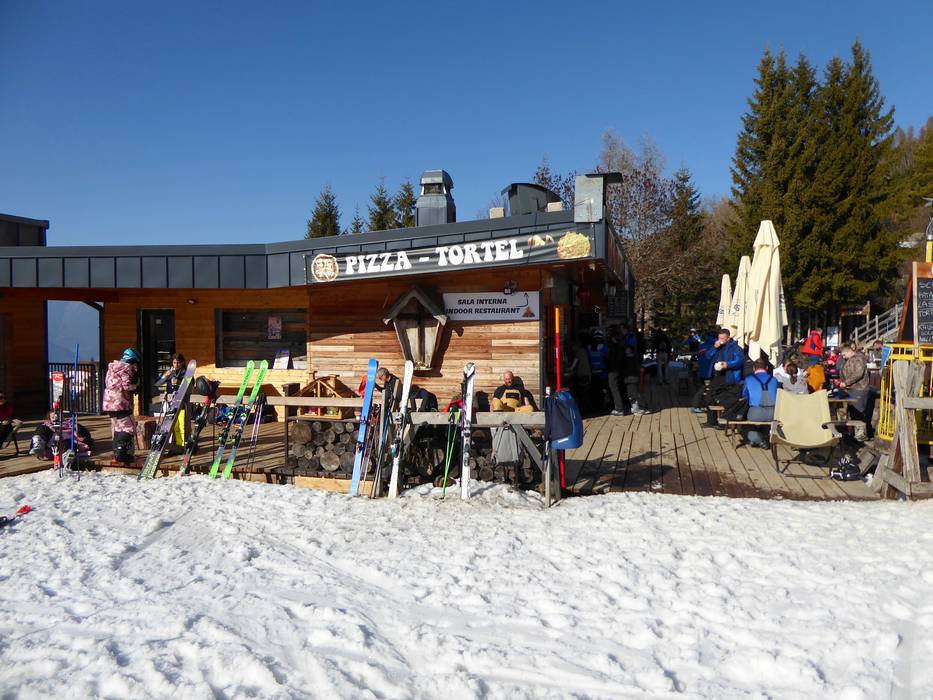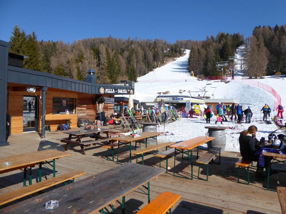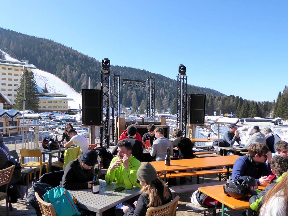 De après-ski locatie in Fondo Grande met muziek, pizzeria en restaurant. Hier kun je de skidag afsluiten met goede muziek, ook op het zonneterras.