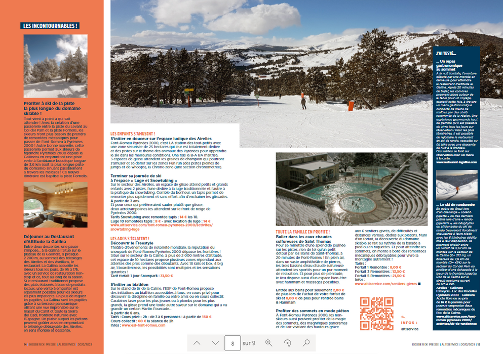 Bouw van een voetgangersbrug tussen de Levante-piste bij Col del Pam en de Fornells-piste, skiërs hoeven geen skiliften meer te nemen om van Font-Romeu naar Pyrénées 2000 te gaan! Nog een goed nieuws: deze voetgangersbrug maakt het voor skiërs mogelijk om Pyrénées 2000 vanuit Galinera te bereiken via een 3,6 km lange groene piste met een idyllische sfeer (de langste piste van het gebied), die zich rustig door de lariksen slingert! Genoemd naar de Fornells-piste.2008/2009