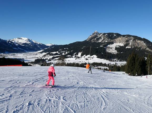 Beginners zetten hun eerste stappen op de Märchenwiese in het dal. Het oefenterrein voor beginners ligt tegenover de Schachenliften, op het laagste punt van het skigebied. Hier geven ook skischolen les. De dubbele sleeplift Schachen ontsluit nog twee andere eenvoudige pistes. In het bovenste gedeelte, ten noorden van de Füssener Jöchle bij de 6-persoons stoeltjeslift, zijn alleen middelzware maar brede pistes te vinden. De dalafdaling van de Füssener Jöchle naar Grän is ongeschikt voor absolute beginners.
