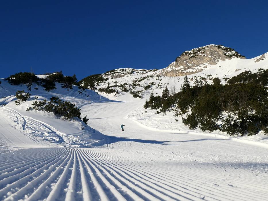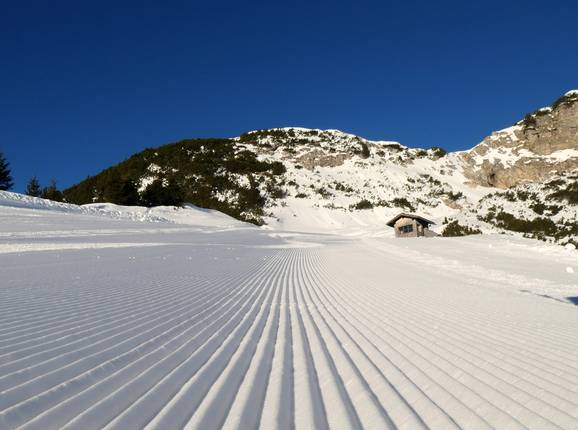 In het skigebied Füssener Jöchle in Grän wordt veel aandacht besteed aan de pistepreparatie.
