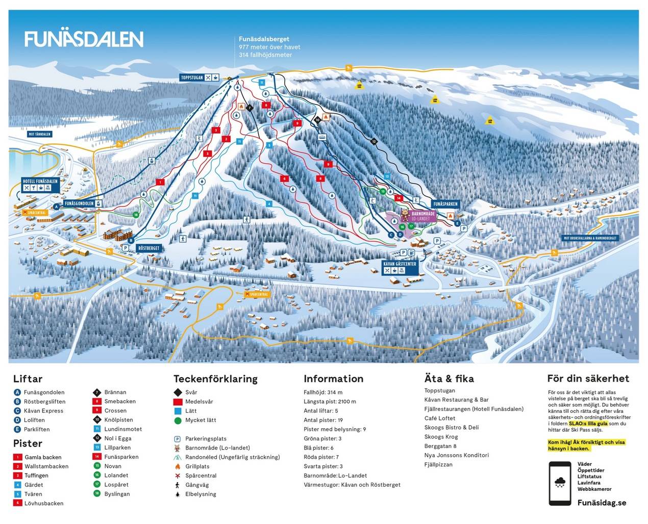 Oriëntatie (pistekaart, informatieborden, bewegwijzering piste) en veiligheid in het skigebied Funäsdalsberget