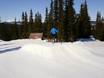 Een goed snowpark met eenvoudige tot middelzware jumps en obstakels wacht op de skiërs en snowboarders.