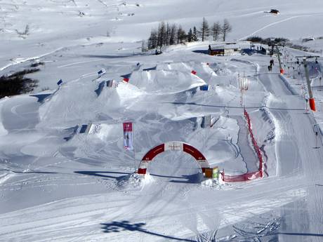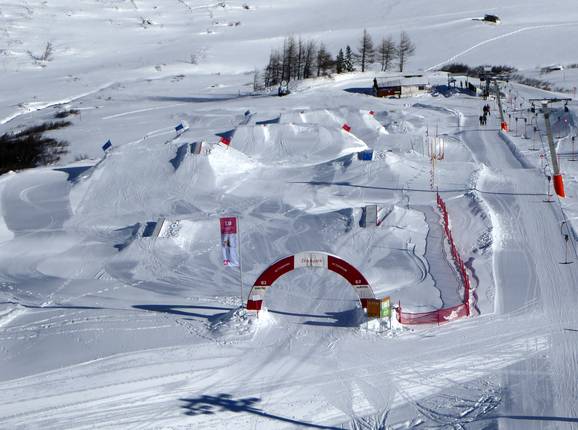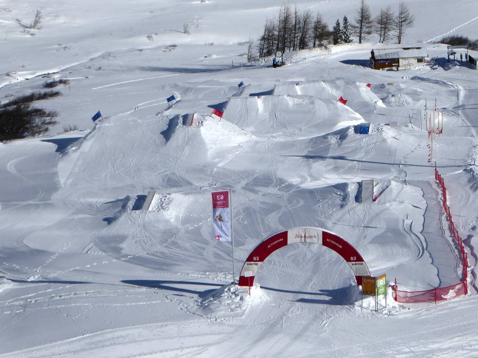 Het middelgrote snowpark ligt bij de Klein-Zeinislift en wordt dagelijks geshaped. Mini Wall, rails, boxes en jumps trekken de freestylers aan.
