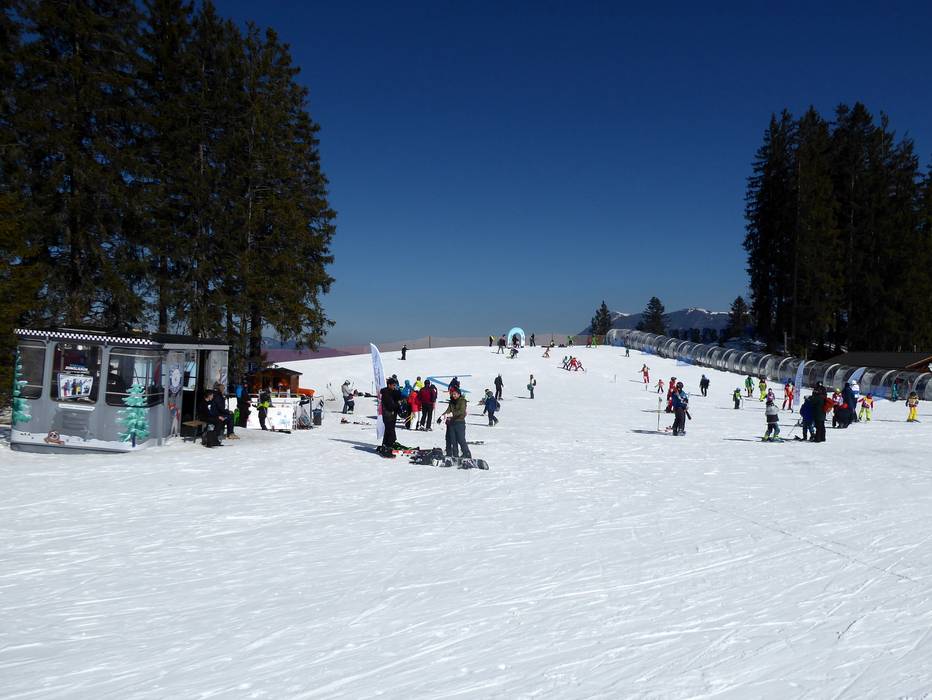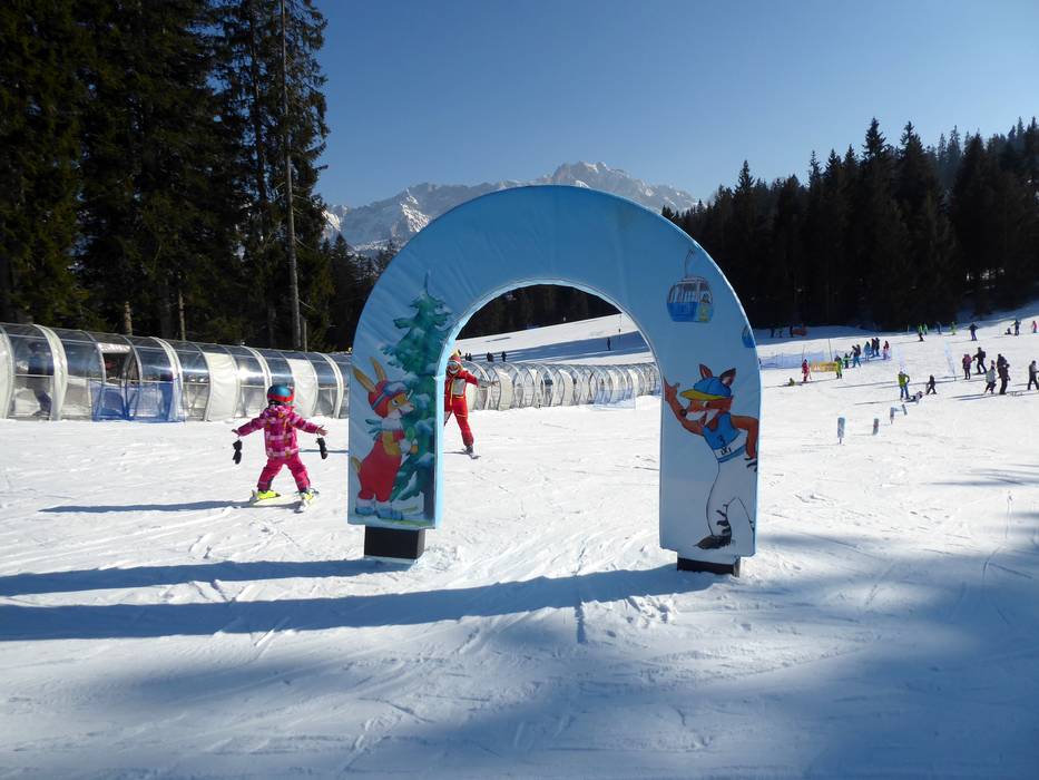 In het Kinderland bij de Hausberg zijn diverse leermaterialen en een ideale helling beschikbaar. Een "tribune" voor de ouders zorgt voor perfecte omstandigheden voor de jonge wintersporters.