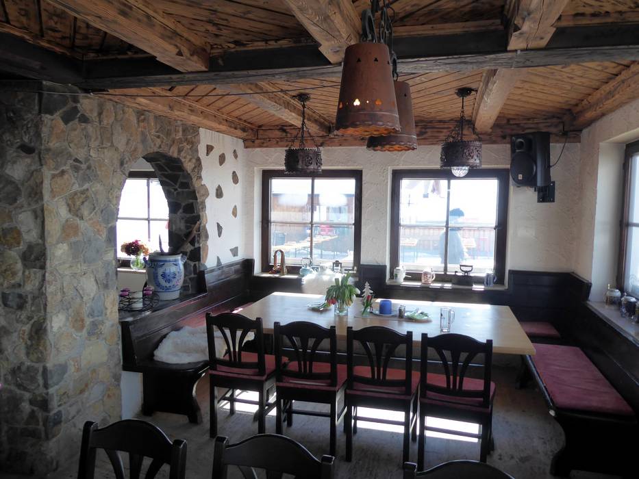 De berghut Bayernhaus biedt naast hartige Beierse lekkernijen in een gezellige sfeer of op het zonneterras ook kamers met uitzicht.