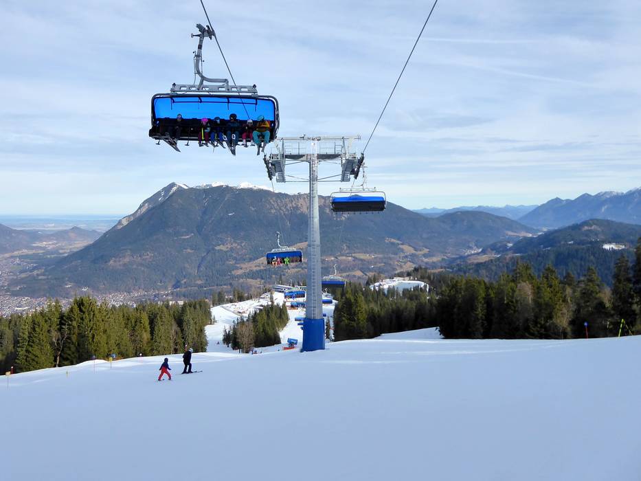 Er zijn besneeuwde dalafdalingen naar de Hausberg en Kreuzeck/Alpspitzbahn.