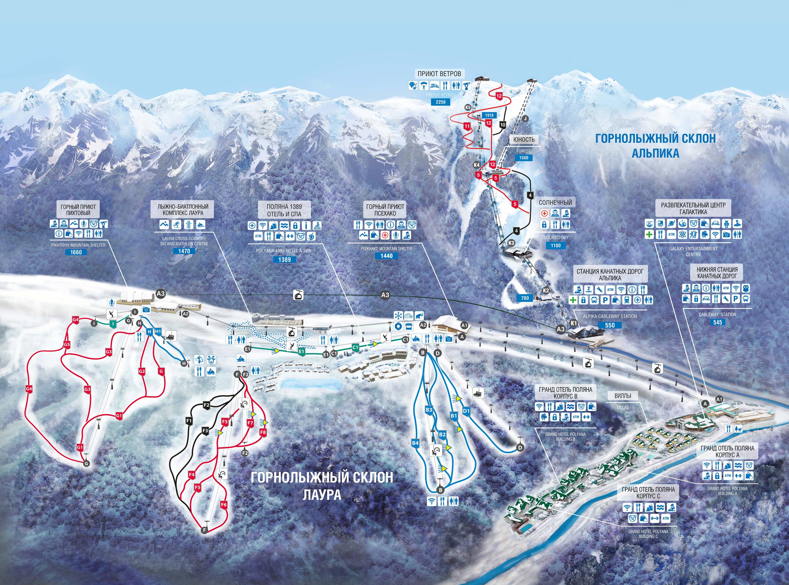 Pistekaart Gazprom Mountain Resort seizoen 2024/2025