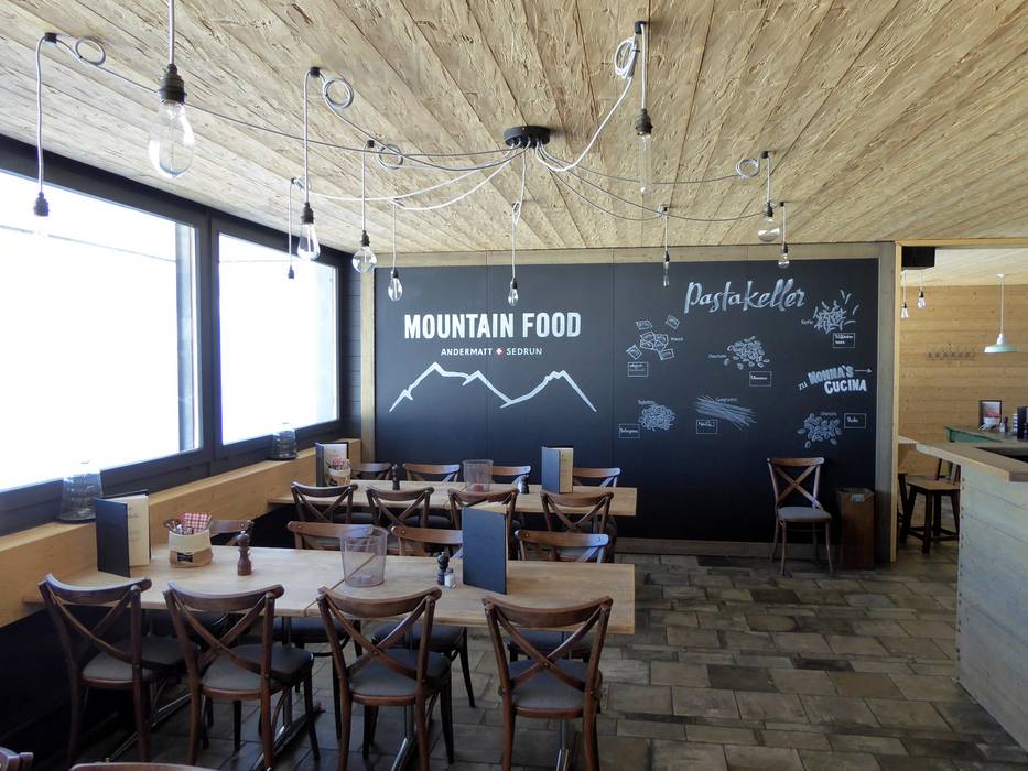 Onder het motto "Mountain Food" exploiteert de SkiArena Andermatt-Sedrun twee restaurants bij het middenstation Gurschen. Een gezellige berghut en een restaurant in het dal maken het aanbod compleet.