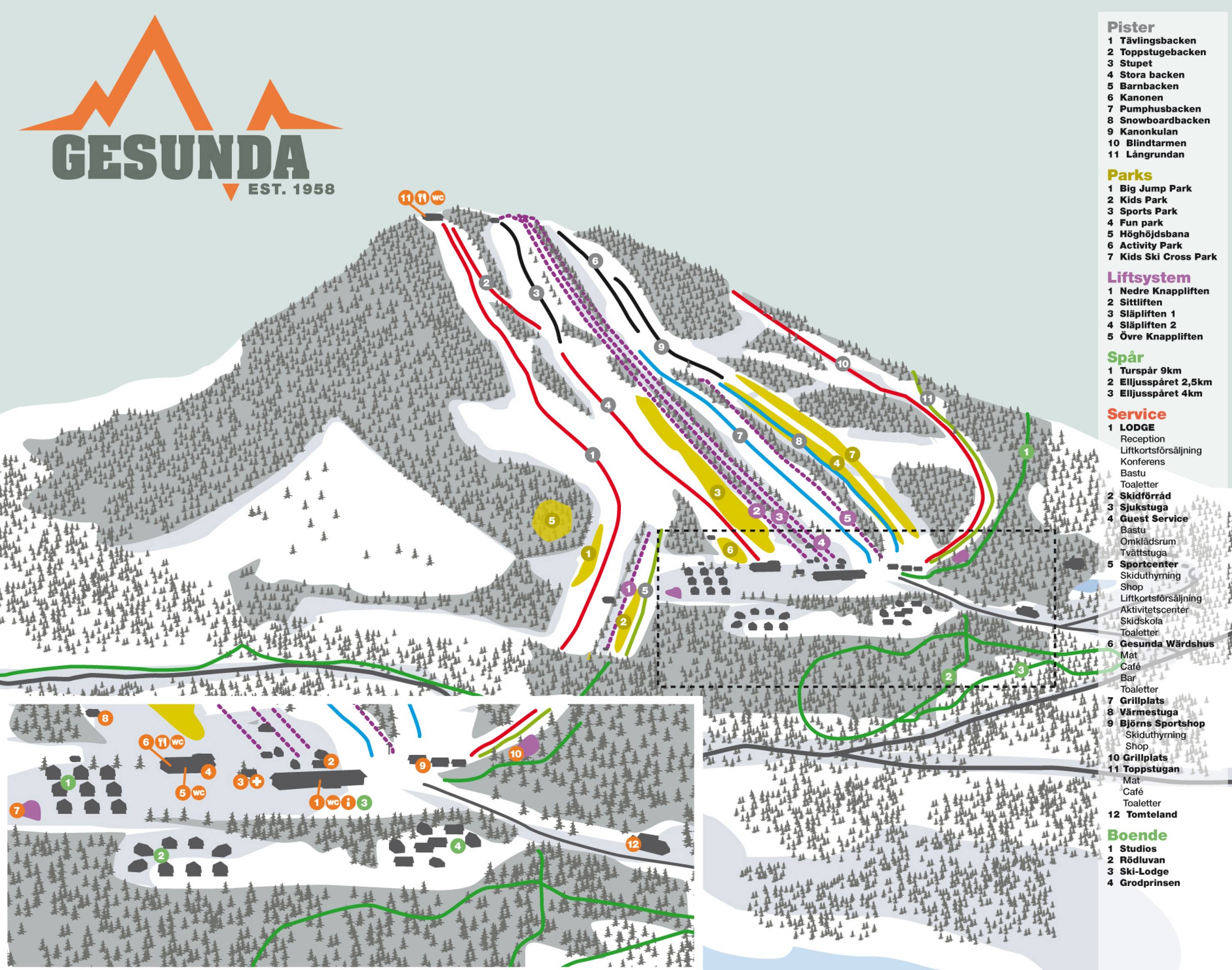 Gesunda (2,7 km), Sollerön (8 km) Plaatsen bij het skigebied